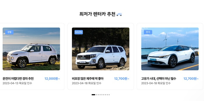 돌하루팡 렌트카는 인지도 높은 제주 렌트카 가격 비교 사이트입니다. 최저가 보상제를 운영하고 있기 때문에 저렴하게 제주 최저가 렌트카를 대여할 수 있습니다. 렌트카 예약 취소도 72시간 전이라면 전액 환불을 받을 수 있고, 365일 고객센터를 운영하고 있어 주말 문의도 가능합니다.